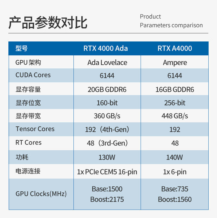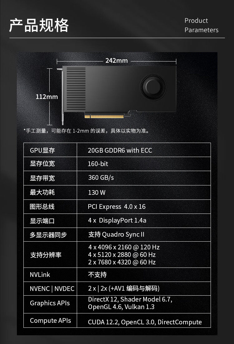 型号:Leadtek / 丽台 RTX4000 Ada,显存 20GB ECC